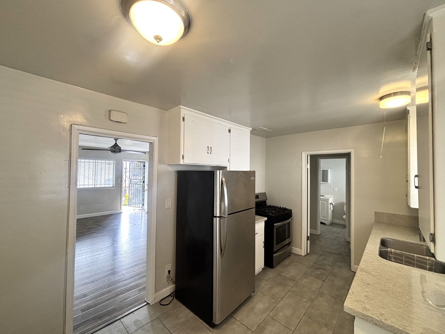 - Appliances Included: Stove, Refrigerator, and Ceiling Fan (Bedroom)