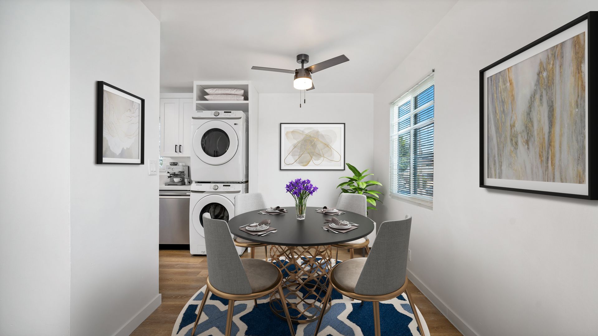 - Appliances Included: Stove, Refrigerator, Dishwasher, and Stackable Washer/Dryer